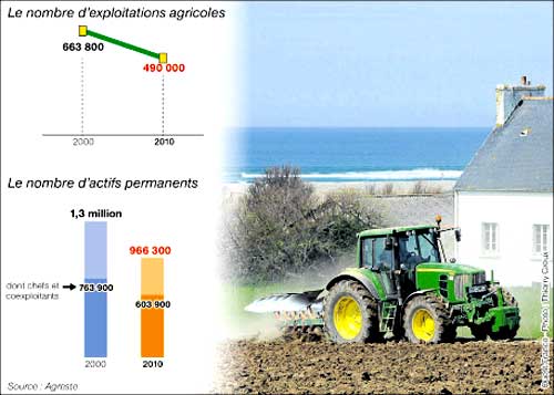 La première décennie du XXIe siècle ne marque pas une rupture avec ce que connaissaient les pays développés depuis le milieu du XIXe siècle : la baisse continuelle des exploitations agricoles et la disparition de nombreux paysans. En 2010, la France est passée sous la barre des 500 000 exploitations et la production agricole directe occupe désormais moins d’un million de bras.